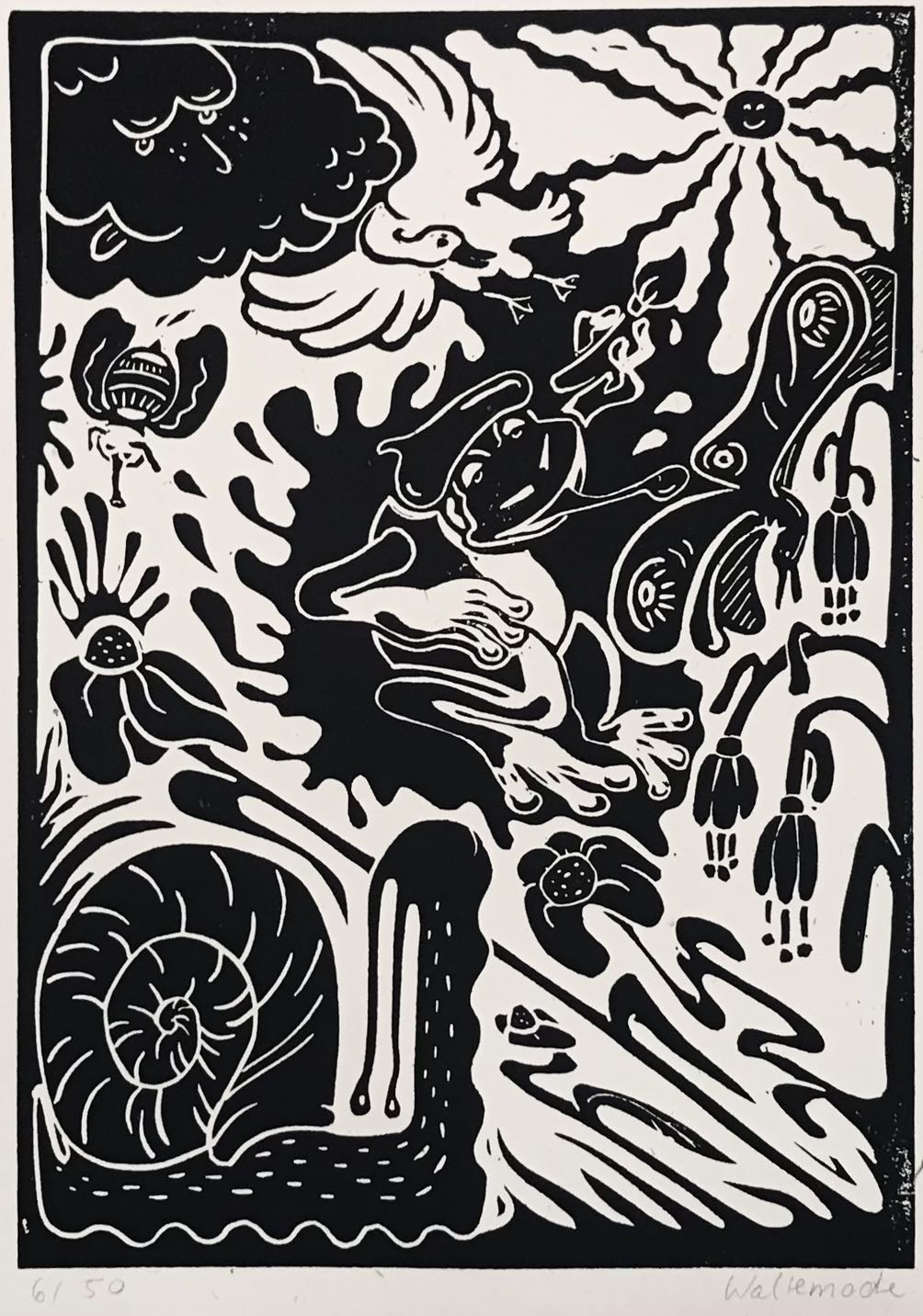 „Garden of Imagination“, Linoprint on Paper, 21×14,8cm, 2021