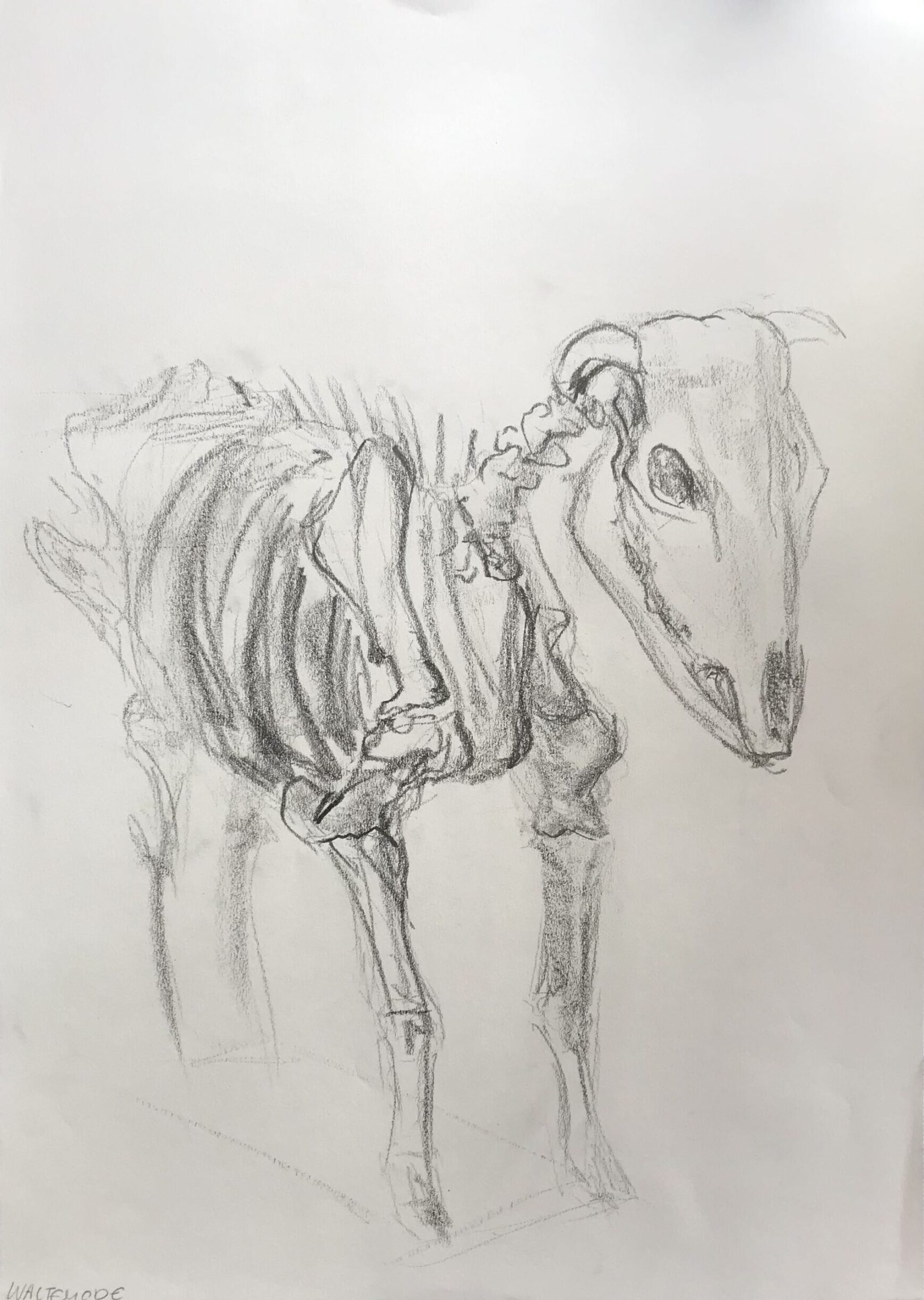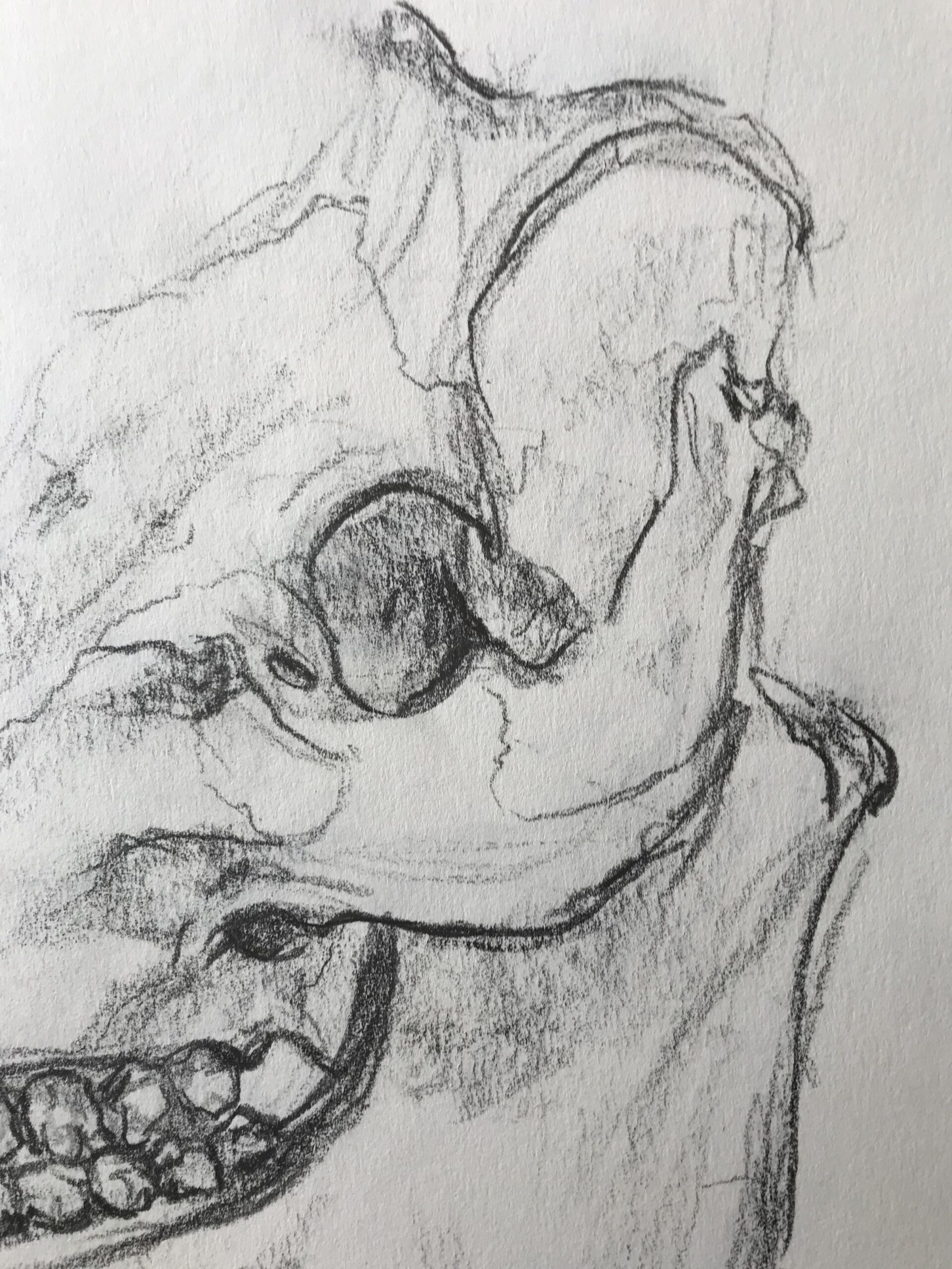 „Cow Scull“, Brown Chalk on Paper 59x42cm,2022