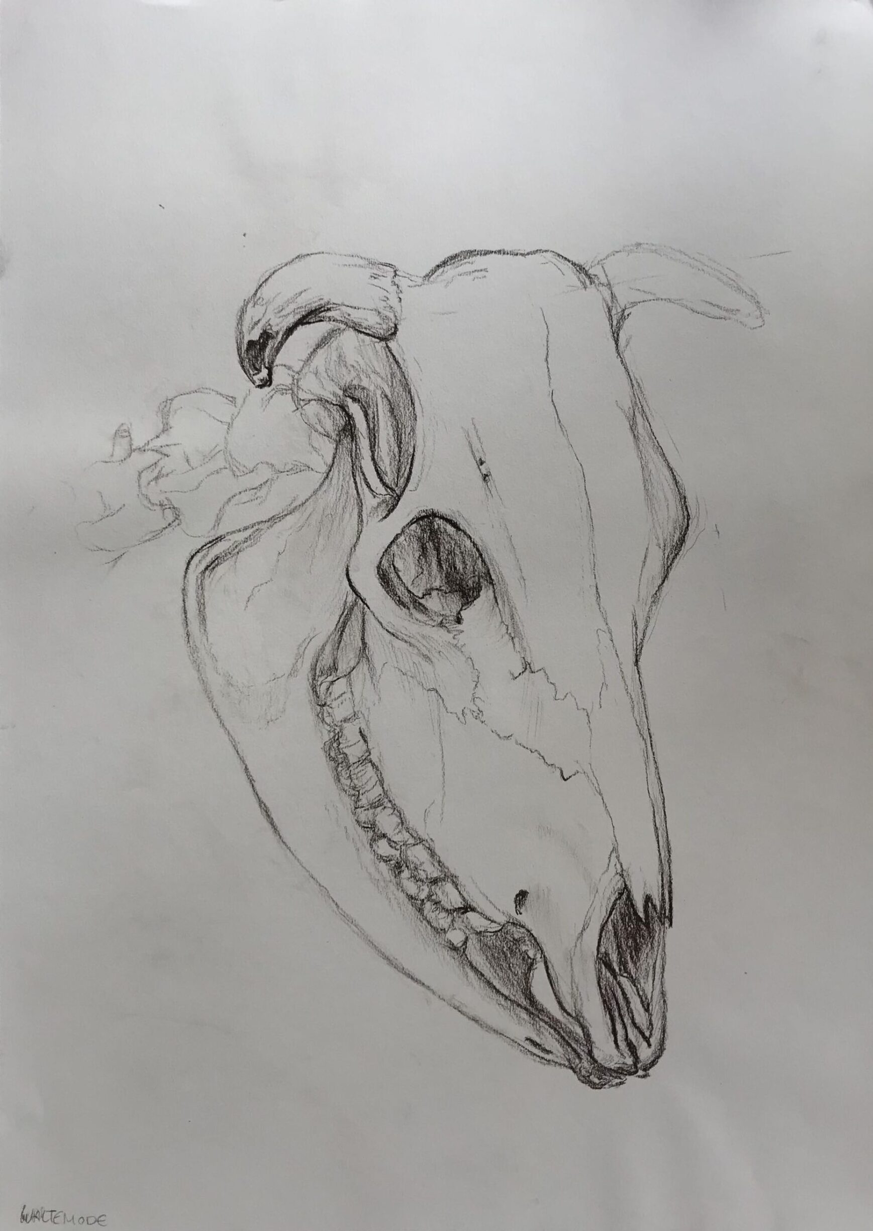 „Pig Skull“, Graphit on Paper, 42x59cm, 2022