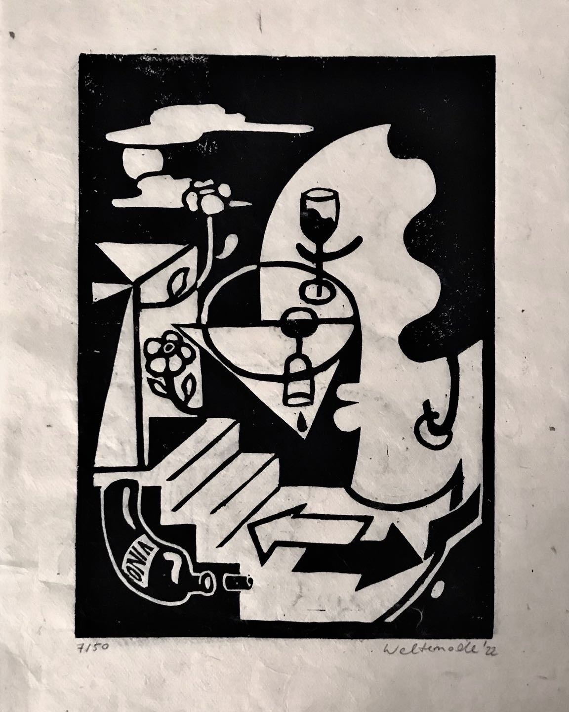 „VINO“ Linoprint on Paper, 29,7x21cm, 2022