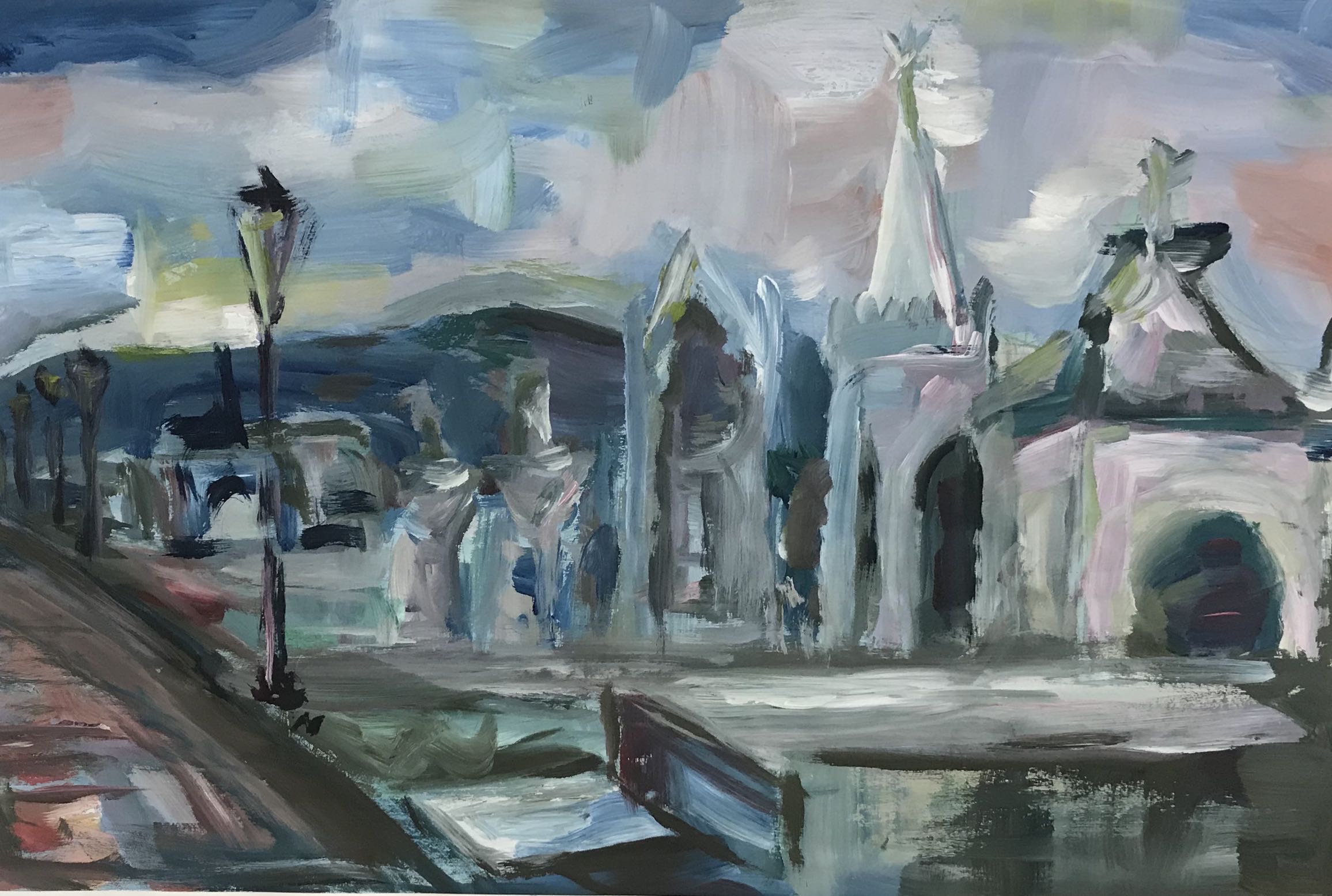 „Cemetery“ Acryl on Paper, 42x59cm, 2019 Sold